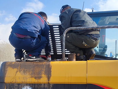 1.檢(jiǎn)查大小臂、鏟鬥、駕(jia)駛室、空濾、配重等(deng)各部件情況是否(fǒu)有開裂、損壞、松動(dòng)等情況,并及時更(gèng)換調整。