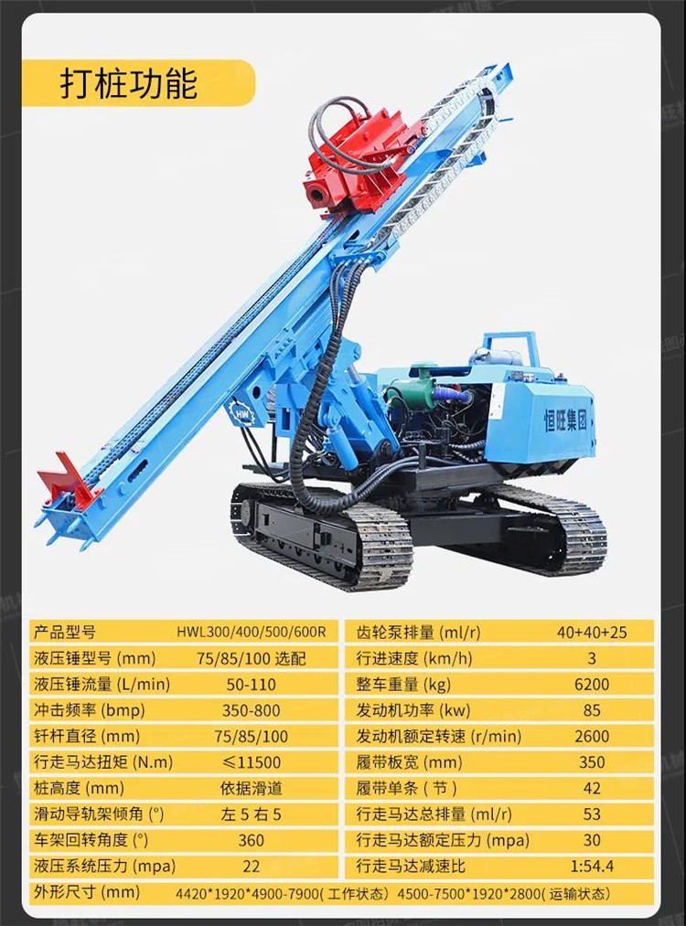 該機設計(jì)合理,操作簡(jian)單,整機可任(rèn)意位置前後(hou)移動、大臂可(ke)左右擺動.具(ju)有定位快、打(dǎ)樁快、效率高(gāo)等特點,也可(ke)以根🐇據客💜戶(hu)要🏃🏻♂️求定制。
